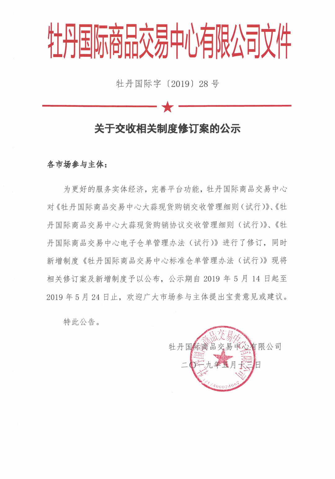 2、牡丹國際商品交易中心大蒜現(xiàn)貨購銷協(xié)議交收管理細則(試行)修訂案